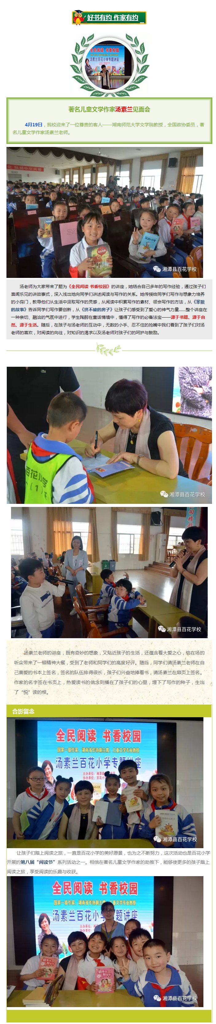 好书有约 作家有约 ——著名儿童文学作家汤素兰见面会