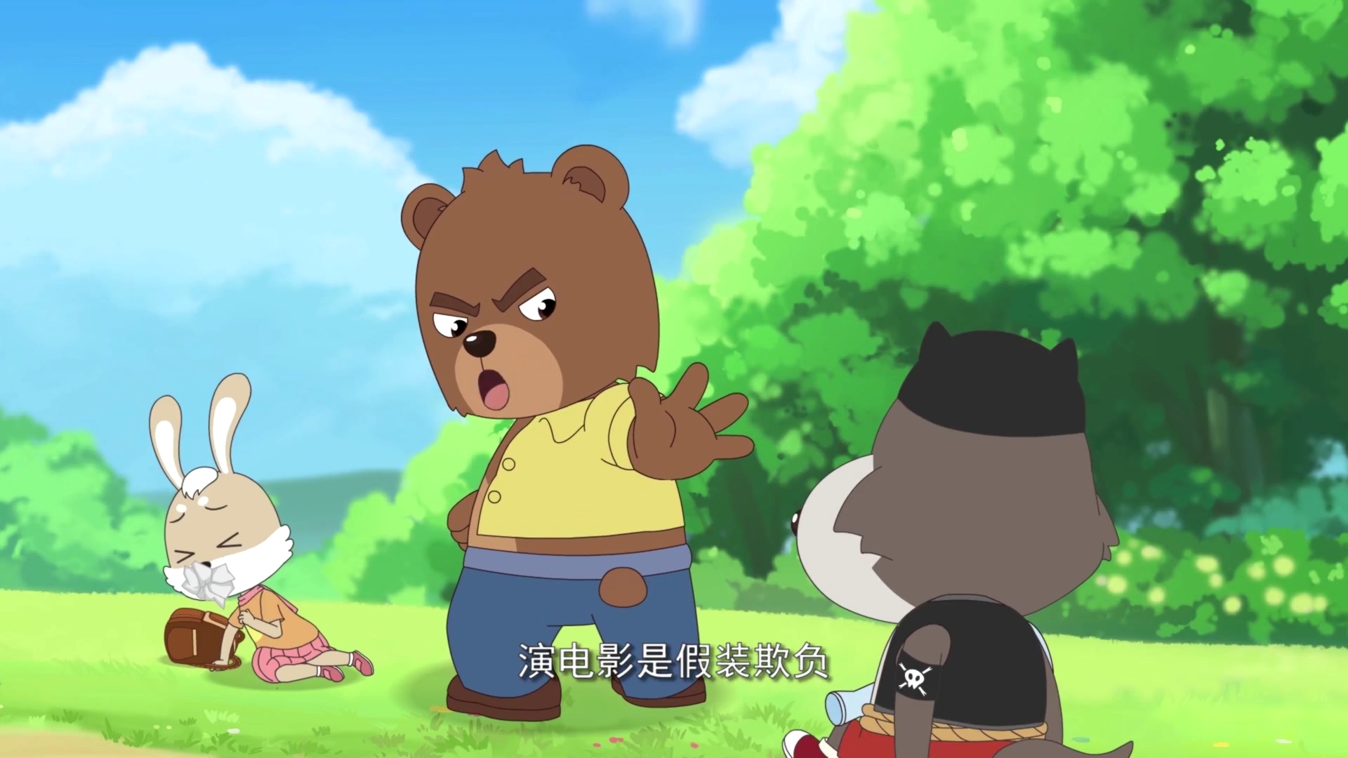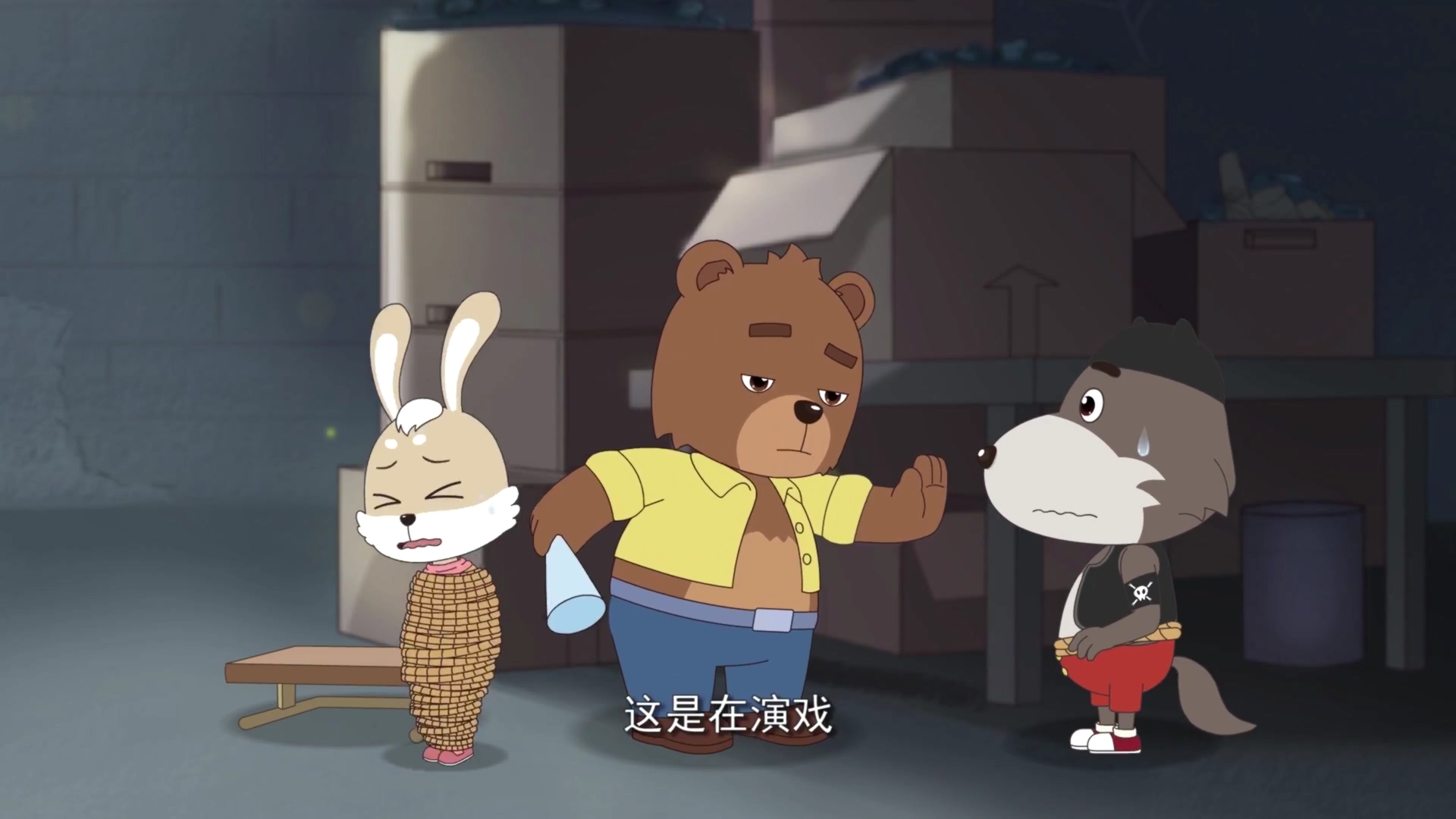 机智的摄影师聪明兔拍下了棕小熊本色出演的过程,并最终剪辑制作出了一部侧面烘托笨狼英雄事迹的电影,可以说圆了笨狼的“英雄梦”。