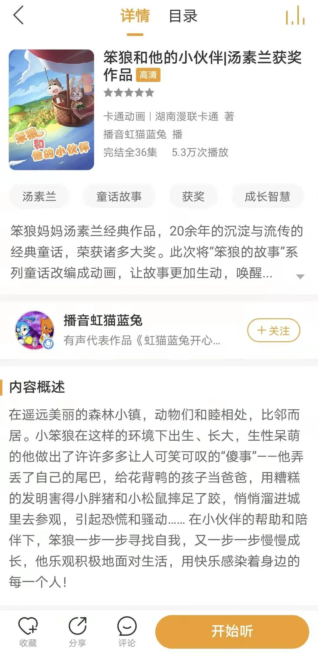 “笨狼妈妈”汤素兰获奖作品,20余年的沉淀与流传的经典童话,荣获诸多荣誉,家长和孩子共同的童年记忆。欢迎下载懒人畅听APP,搜索“笨狼和他的小伙伴”进行收听。