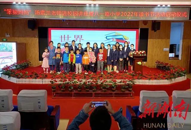 日前,在长沙市芙蓉区八一路小学隆重开展了校园读书节启动仪式暨汤素兰老师入校讲座活动。全国知名儿童文学作家“笨狼妈妈”汤素兰老师为孩子们传经送宝,旨在让每一位同学体验表达互动的乐趣,享受阅读与写作的快乐。