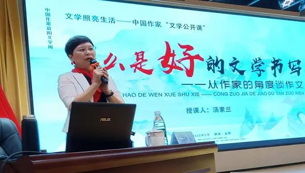 文学照亮生活。5月23日上午,中国作家协会“作家活动周”暨中国作家“益阳文学周”期间,中国作家“文学公开课”系列活动开讲,湖南省作协主席、全国优秀儿童文学奖获奖者汤素兰为300余名中小学生、文学爱好者分享创作经验,讲述文学的魅力。